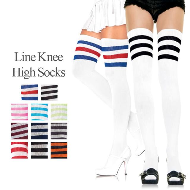 ライン入り サイハイソックス レディース ファッション ハイソックス ニーハイ 無地 ライン ボーダー