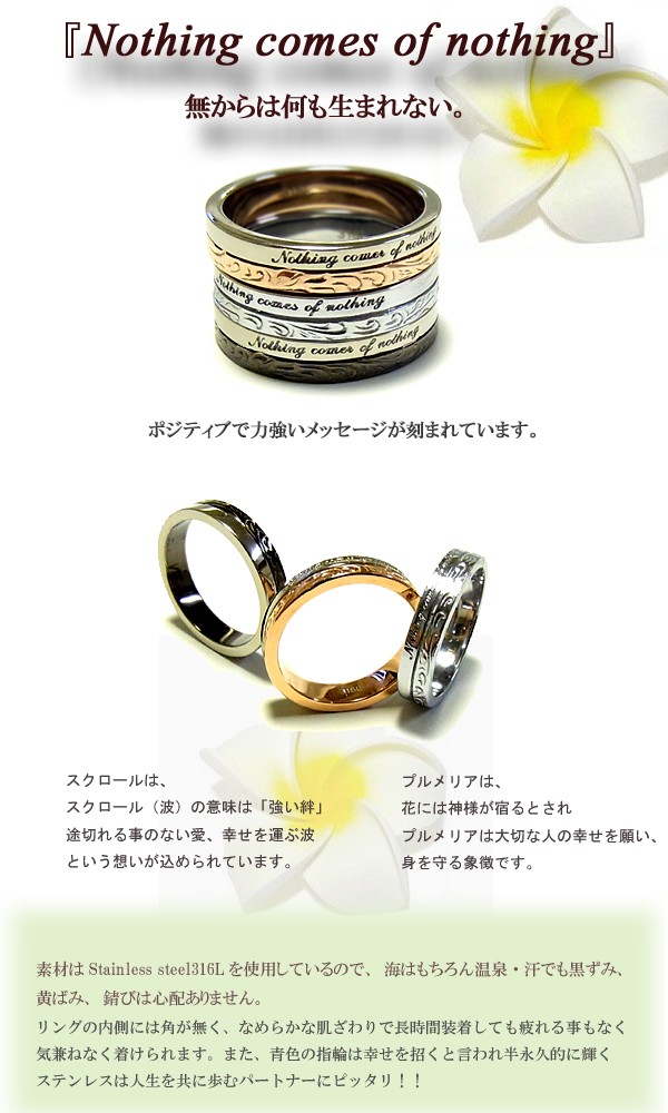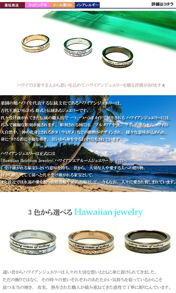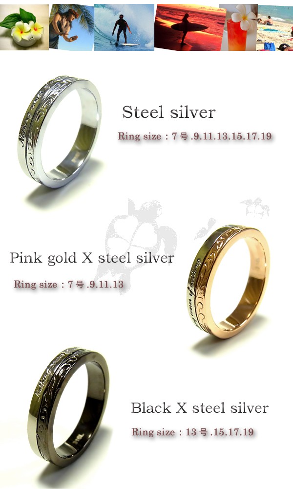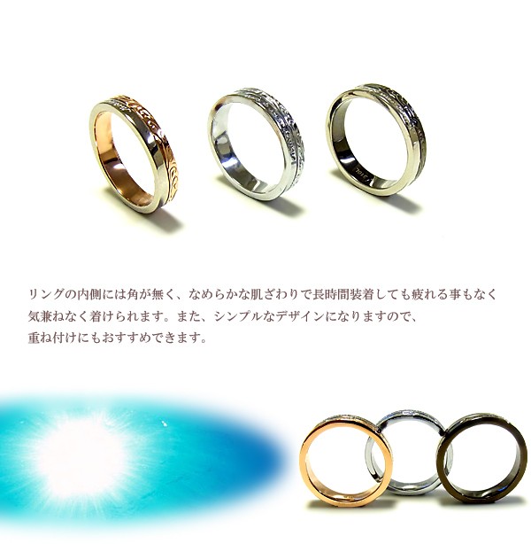 送料無料 刻印可能 ハワイアンジュエリー リング メンズ レディース 指輪 ピンクゴールド ブラック ステンレス ラッピング対応 アレルギー対応 ペアリング セットにも