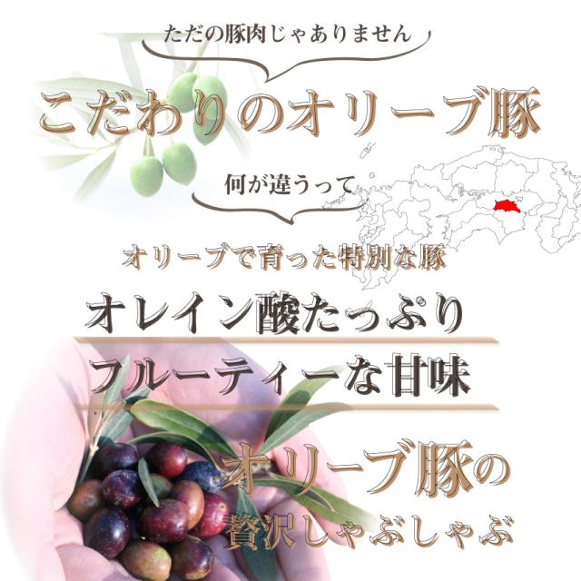 | 商品特徴 | お肉の職人がオリーブ豚肩ロース肉を、しゃぶしゃぶ用に1枚1枚スライスし、丁寧にセロファンで包み込み、空気に触れることなくチルドで鮮度を保ち、お店で切り立ての最高の状態を食卓で召し上がれます。 |