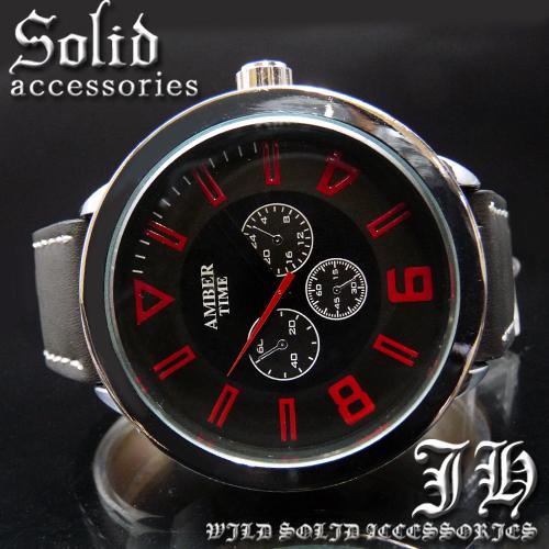 送料無料 超人気メンズ腕時計 ビッグフェイス仕様 スタイリッシュなデザイン メンズ レッド赤【 tvs153 】