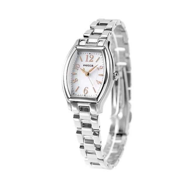 正規品 7年保証キャンペーン 送料無料 シチズン ウィッカ ソーラー レディース 腕時計 ホワイト×ピンクゴールド CITIZEN wicca KH8-713-11 ◆ウィッカは旬のカワイイがいっぱい詰まった腕時計ブランドです。幅広い年齢層の方に支持されており、就活やビジネスシーンなどにも人気です。 トノー型のソーラーウォッチを現在のトレンドに合わせてリニューアル。シンプルなケースに視認性の良いダイヤルを採用しています。就職活動や友達との遊びにもオールマイティーに活躍できるスタンダードデザインに、キラキラを少し抑えたピンクインデックスを合わせて可愛さをプラス。初めてのソーラーウォッチにもオススメです。 発売日:13年2月発売