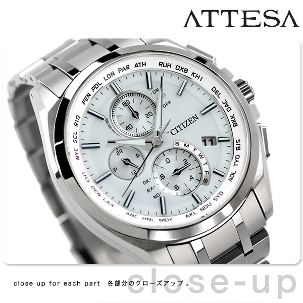 AT8040-57A シチズン アテッサ エコドライブ 電波時計 メンズ 腕時計 ブランド チタン クロノグラフ CITIZEN ATTESA ホワイト 白 時計