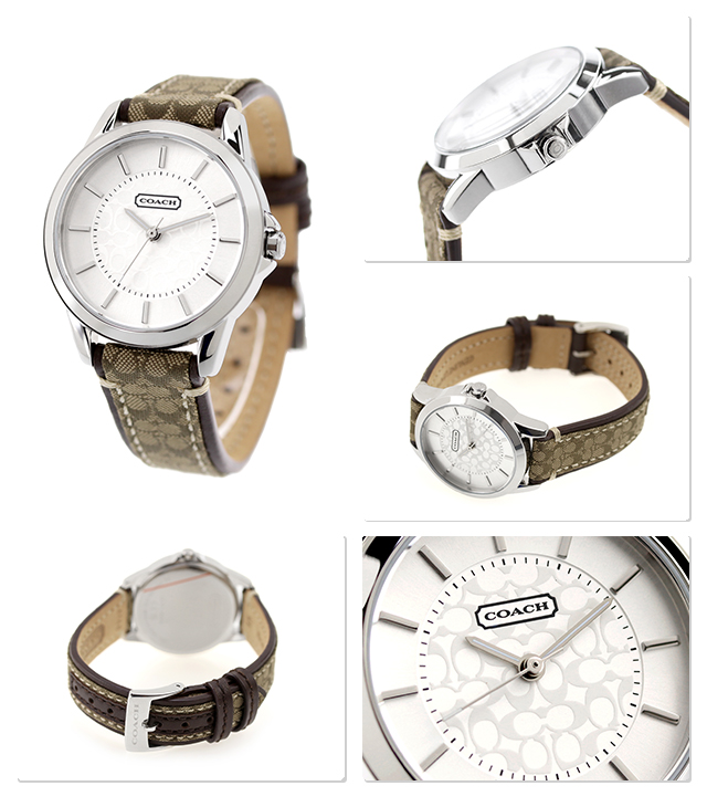 3年保証キャンペーン コーチ レディース 腕時計 クラシック シグネチャー シルバー×ブラウン レザーベルト COACH 14501525 コーチは1941年にマンハッタンの小さなロフトで皮革製品の家内工業として始まりました。今日では世界中で絶大な人気を誇るファッションブランドです。男女問わず多岐にわたるシックで機能的なアクセサリーにきめ細かな最高品質の素材を用いて、現代的なアメリカンスタイルを取り入れた身近な高級品という新しい定義を形成しています。コーチブランドの柄、色、詳細な金具を取り入れたコーチウォッチは、最新のコーチバッグやデザインコレクションと新鮮でファッショナブルにマッチすると共に、精密なクオーツを備えてます。 シンプルなフェイスデザインに、コーチならではのシグネチャー柄が特徴のモデル。さまざまなファッションに合わせてお使い頂けます。