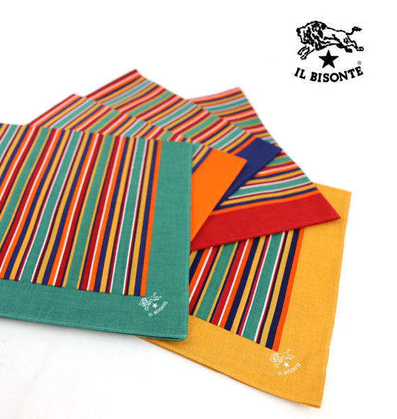 正規品IL BISONTE(イルビゾンテ) コットン ストライプ柄 大判 バンダナ・411671・0061801【メール便可能1】 就職祝い 母の日 父の日 誕生日 バレンタイン プチギフト プレゼント ギフト 新品