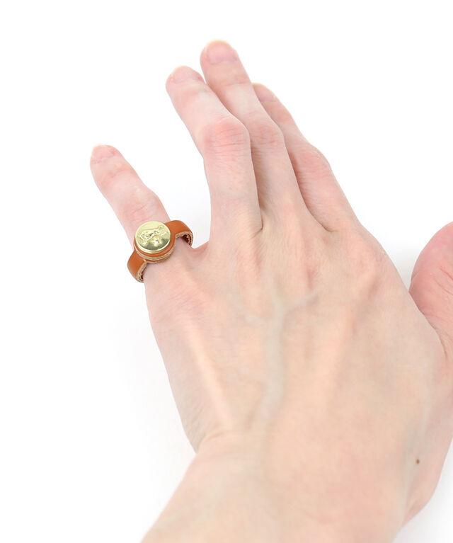 水牛ロゴの刻まれた真鍮コンチョがポイントのレザーリング。