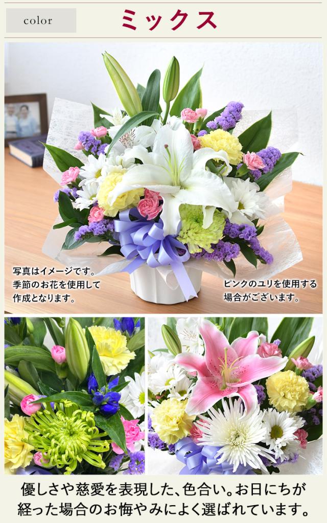 - 母の四十九日法要用に注文しました。希望通り、お願いした日に綺麗なお花が届きました。つぼみもあるとのことだったので、少し早めに届けてもらいました。母の好きなお花も入れていただき感謝致します。きっと母も喜...