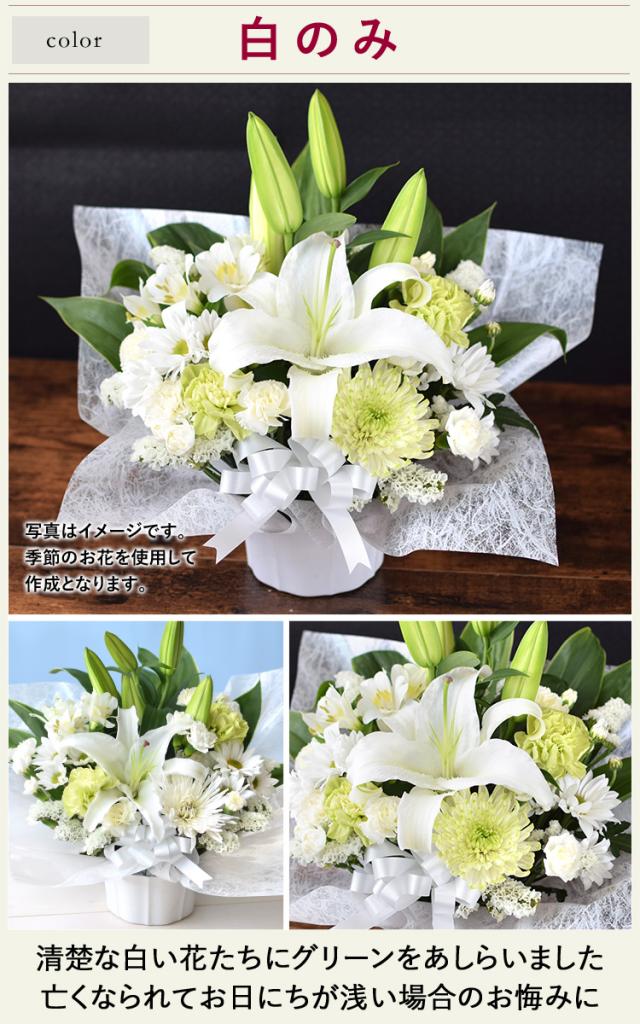 ●白のみ、にはグリーン系のお花が入ることがあります。