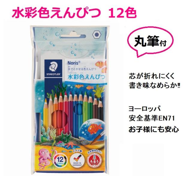 ステッドラー 水彩色鉛筆 12色 1400円 14410NC12P ノリス 画筆付 メール便 送料込 プレゼント 水彩 色鉛筆