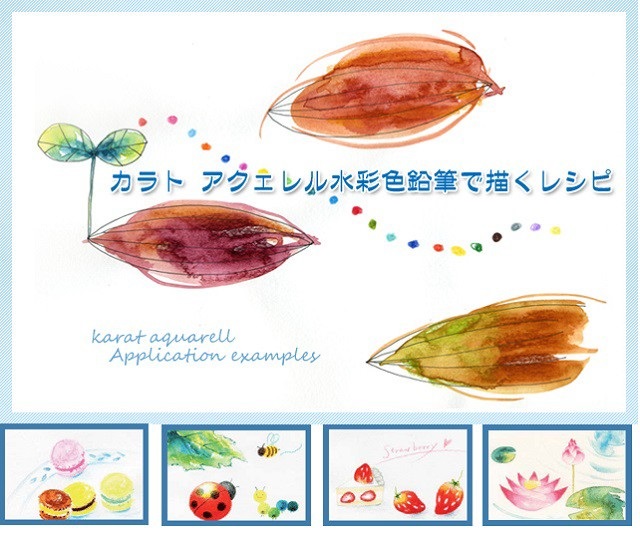 色鉛筆で描いた後、水を含ませた筆でなぞると水彩画の様な仕上がりになる水彩色鉛筆。