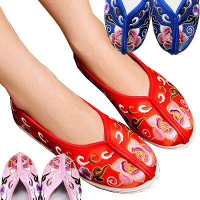 京布唐 中華サテン刺繍シューズ レディース|赤,紺,ピンク,ステージ,衣装,刺しゅう,布シューズ,布靴,老北京,中国靴,チャイナ靴,中国,中華街,レトロ,雑貨,ノスタルジック,昭和,シューズ,お土産,ギフト,プレゼント