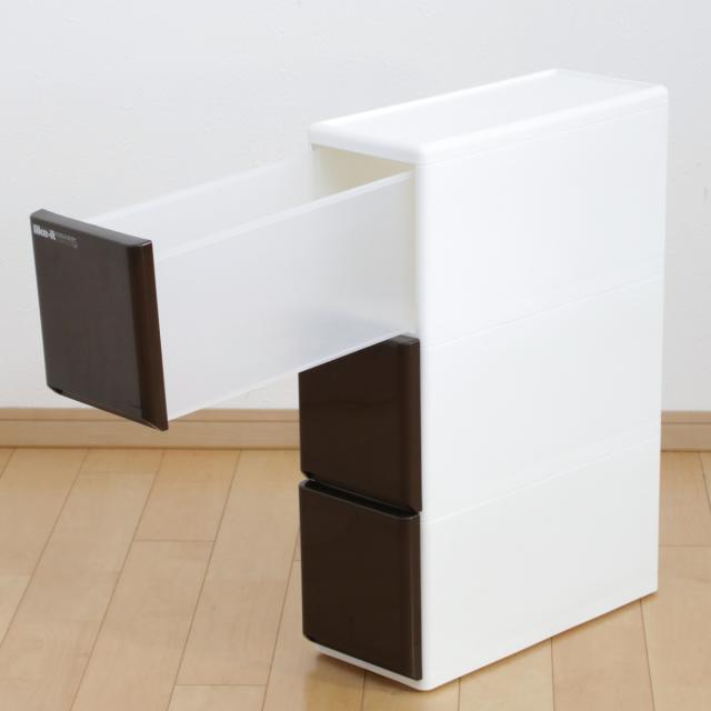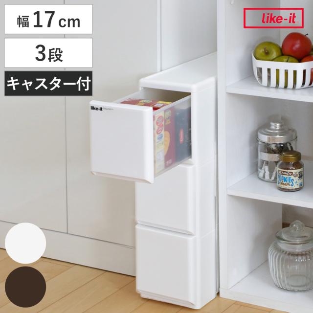 キッチンストッカー ラグドロワ 3段 スリム 光沢パネル 幅17cm ( 収納ストッカー キャスター付き ラスチック 収納ケース 隙間収納 ワゴン キッチン収納 引き出し 隙間 すき間収納 キッチン すきま収納 隙間収納 キッチン)