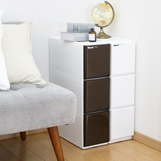 前面の光沢パネルと落ち着いた色合いは高級感があり、リビングに置いても自然になじみます。また、透け感がないので、生活感の出る調味料や洗剤のストック、お子様のおもちゃなどを入れても気になりません。