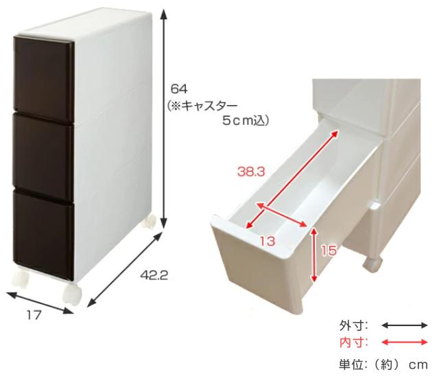 | サイズ | 約 幅17×奥行42.2×高さ64(cm) ※キャスターサイズ5cm込 |