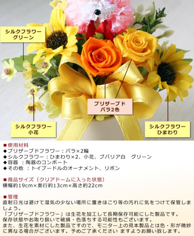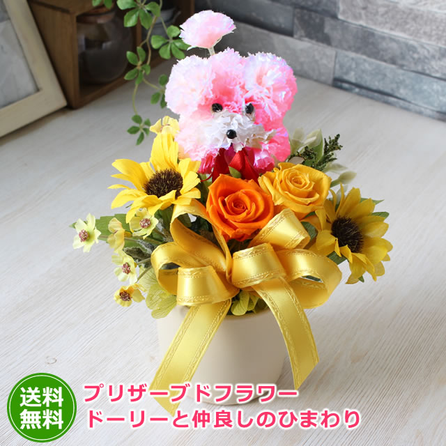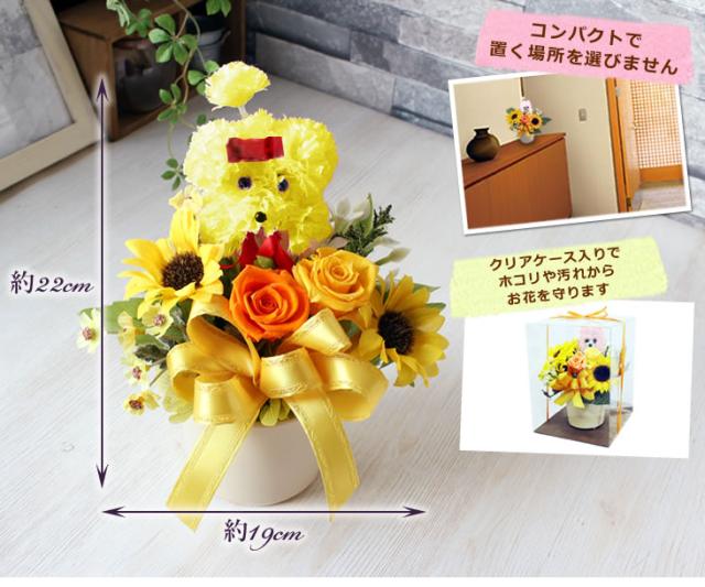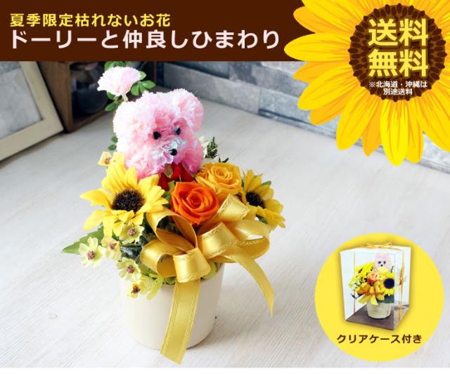 プリザーブドフラワー トイプードルドーリーと仲良しのひまわり ケース入り 送料無料 花 アレンジメント プレゼント ギフト 贈り物 フラワーギフト 誕生日 結婚記念日 お見舞い お祝い 結婚