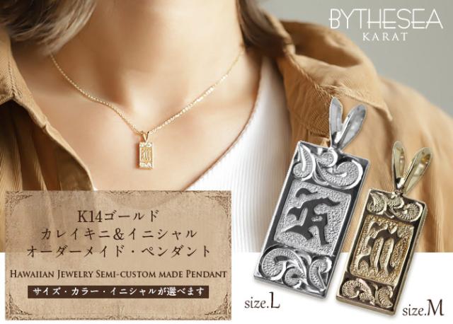 ハワイアンジュエリー オーダーメイド ゴールド ネックレス 刻印 無料 誕生石 ハワイアン k14 14k ゴールド イニシャル リング ピンクゴールド イエローゴールド イニシャルネックレス メンズ レディース 誕生日 プレゼント 【品番:KJGP-001】