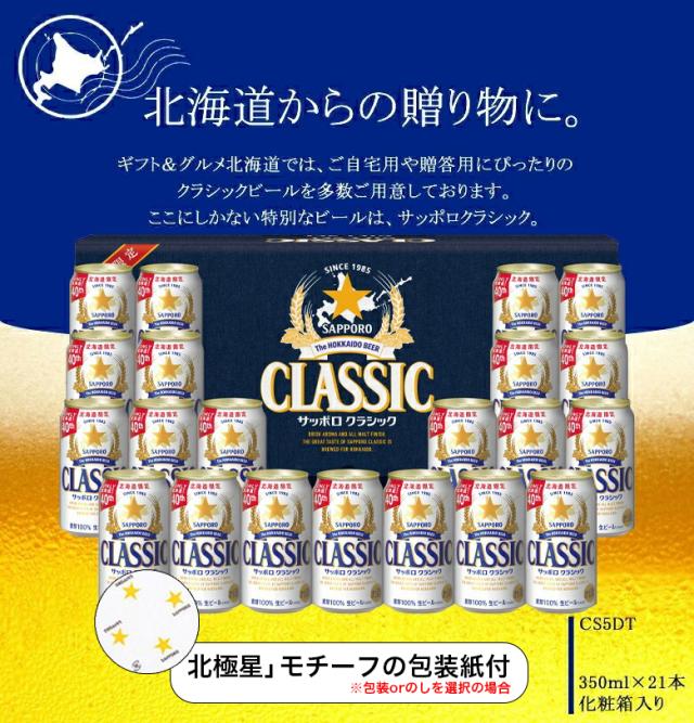 お歳暮 ビール ギフト 送料無料 ビール サッポロクラシック 21本入り 化粧箱入り (CS5DT) / 御歳暮 内祝い お返し サッポロ 札幌クラシック お酒 国産ビール クラシックビール サッポロ 北海道限定 北海道 まとめ買い 自宅用 札幌 セット 熨斗 熨斗対応