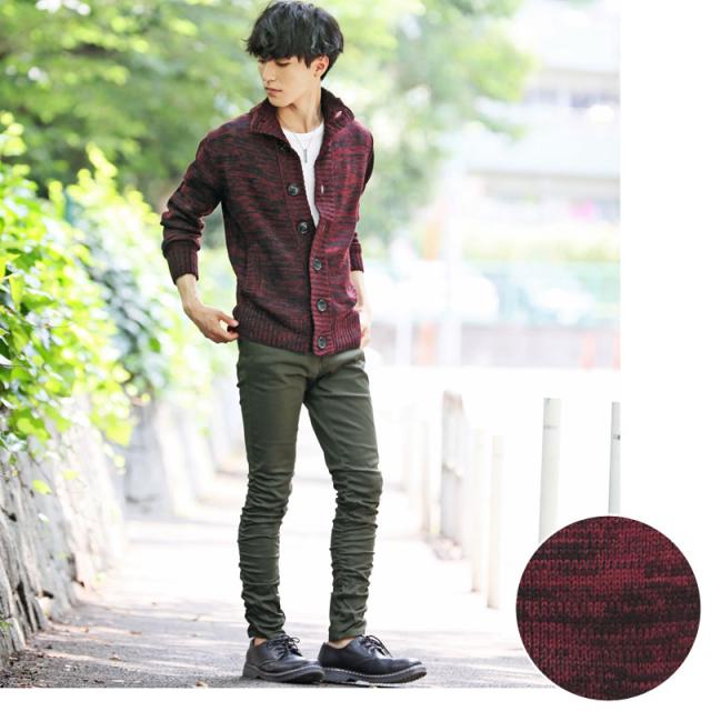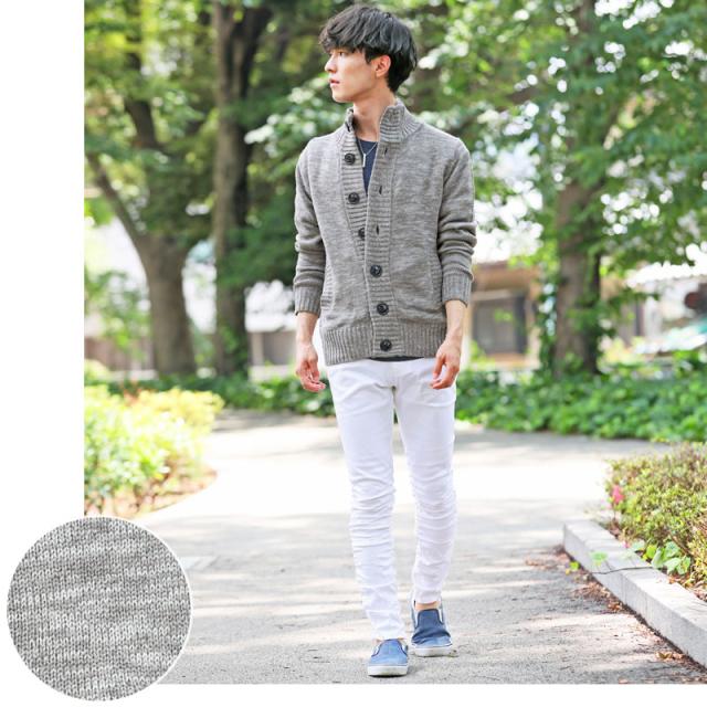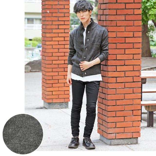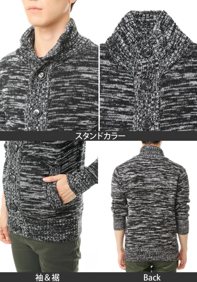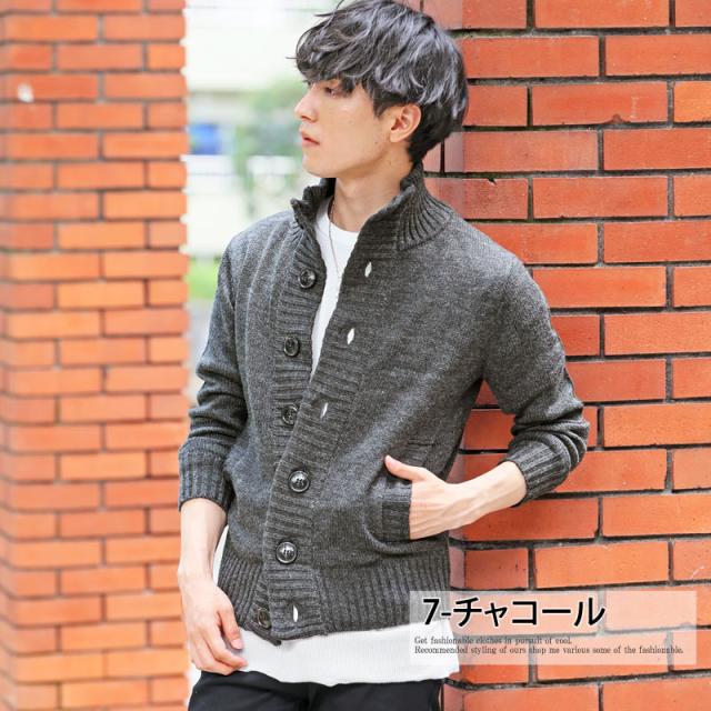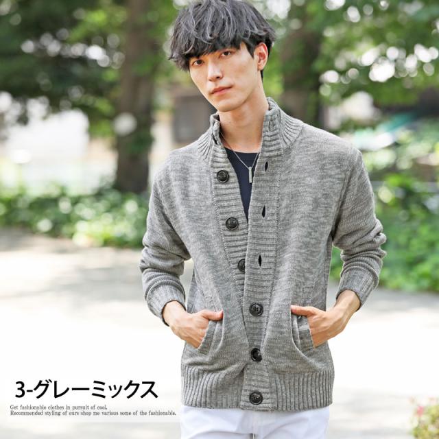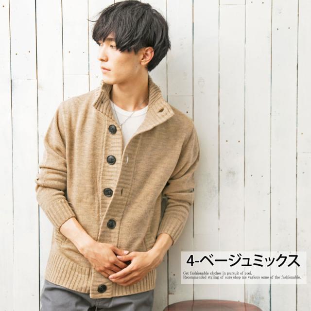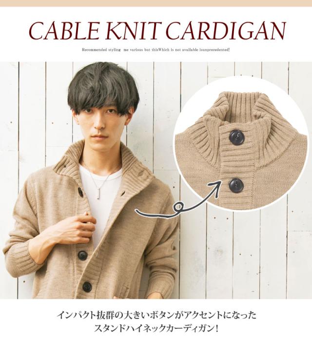 秋新作 送料無料 カーディガン メンズ ニットカーデ スタンドカラー ハイネック ケーブルニット ニットカーディガン 新作 デカボタン キレイめ カジュアル 羽織り トップス ベージュ 黒 あったか_b
