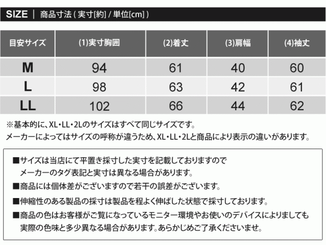 ※基本的に、XL・LL・2Lのサイズはすべて同じサイズです。