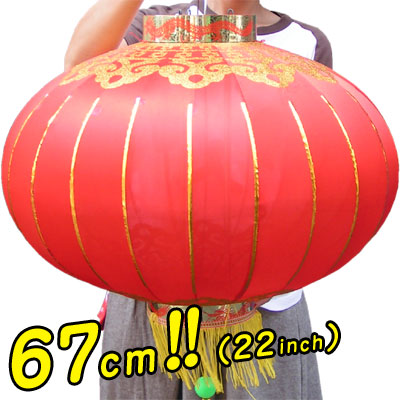 中国金条辺紅中華提灯(サテンランタン赤、長67cm)22inch||中国,伝統,宮灯,宮燈,プラデコ,中華街,お土産,提灯,紅,赤,折り畳み,店舗,装飾,デコレーション)