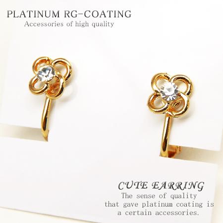 フラワー型イヤリング パーティー 結婚式 プレゼント レディース ゴールドcr 花 CZダイヤ【 fp89 】