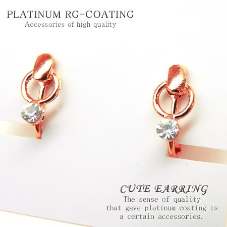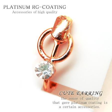 CZ付お洒落イヤリング パーティー 結婚式 プレゼント レディース ピンクゴールドcr シンプル CZダイヤ【 fp114 】