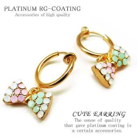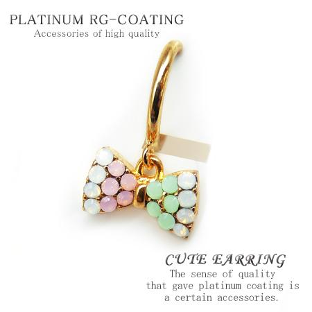 リボン型イヤリングで、存在感がありファッションに合わせやすい♪パーティーや結婚式、プレゼントにも人気のイヤリングです