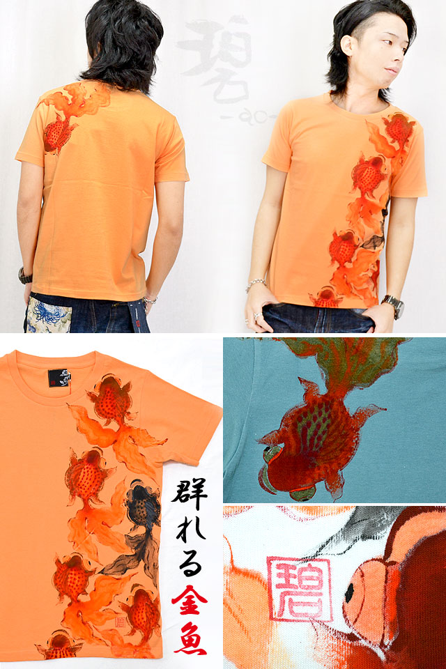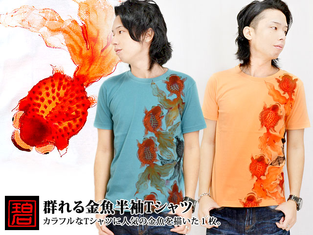この道40年以上の「ぬれ描き友禅作家・碧三」が魅せる、上品で繊細さが特徴の碧(あお)より「群れる金魚半袖Tシャツ」のご紹介です。 | ||||||||||||||||||||||||||||||