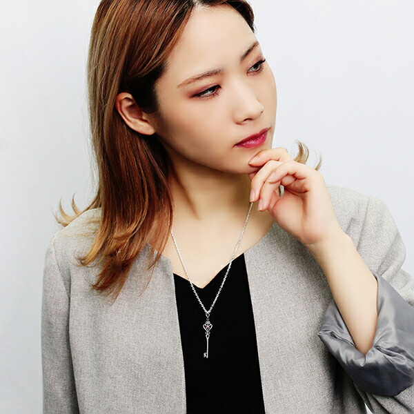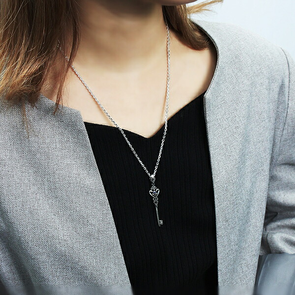アラベスク模様の鍵モチーフのシルバーネックレス。