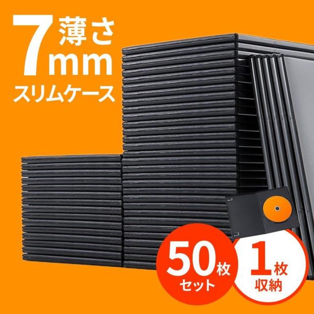 薄型 DVDトールケース 厚さ7mm 1枚収納 DVDケース 50枚 ブラック [200-FCD039BK]