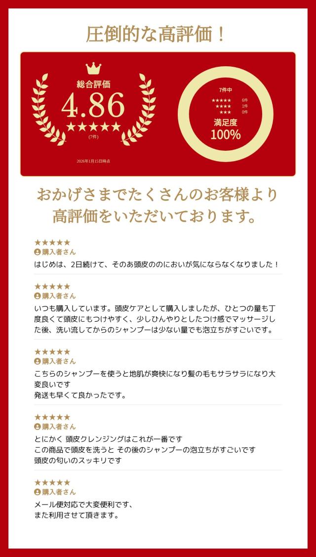 低刺激で頭皮の蓄積皮脂を落とします。