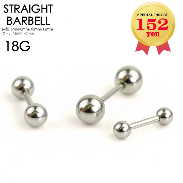 【メール便対応】ボディピアス ストレートバーベル 18G (1mm) サージカルステンレス316L(医療用) ボール【軟骨 トラガス イヤーロブ 舌ピアス スタンダード ファーストピアス】【bp139】┃