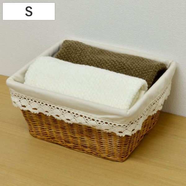バスケット 天然素材 レース Sサイズ 収納 ( 幅34.5×奥行30.5×高さ17.5cm カゴ 布付き 手編み かご 持ち手付き 収納ケース 収納ボックス 長方形 小物収納 収納カゴ インナー付き おもちゃ 小物入れ 玄関 リビング キッチン )