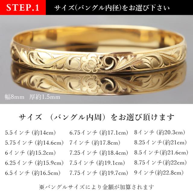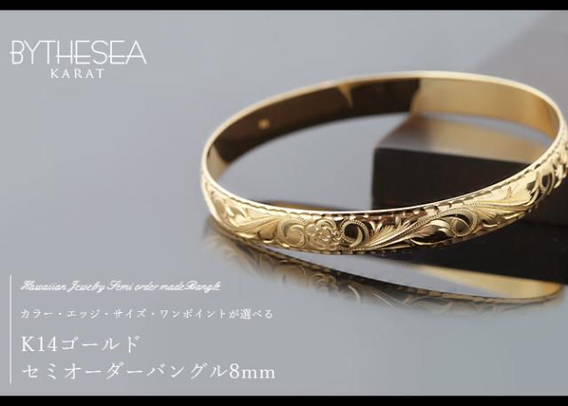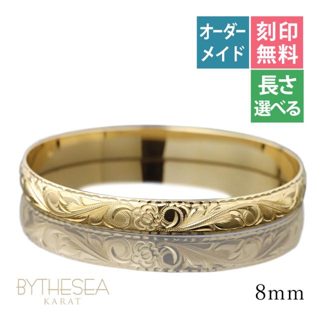 ハワイアンジュエリー オーダーメイド バングル オーダーメイド 幅8mm 柄選べる 刻印 無料 サイズが選べる K14ゴールド クローズバングル 彼女 妻 女性 レディース 誕生日 プレゼント 【品番:KJGB8-001】
