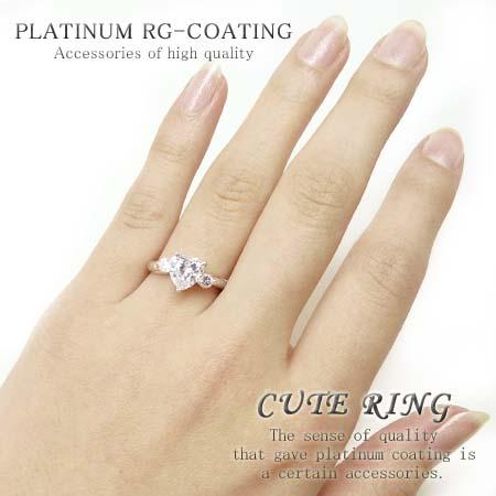 超可愛い大粒CZハート型ピンキーリング 高級プラチナRG加工 パーティー 結婚式 プレゼント CZダイヤ【 kor196 11号 】