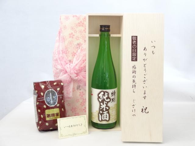 じいじの敬老の日 ギフトセット 日本酒セット いつもありがとうございます感謝の気持ち木箱セット+オススメ珈琲豆(特注ブレンド200g)( 早川酒造 特別純米酒 720ml(三重県) ) メッセージカード付