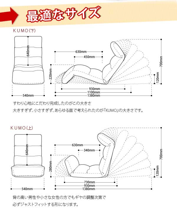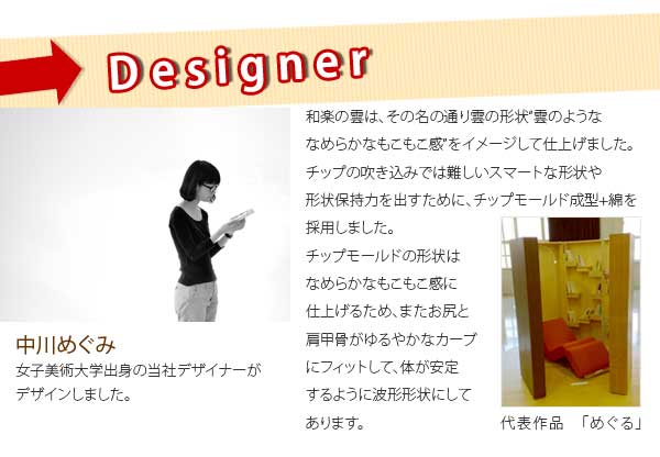 なんと和楽の雲は2744通りの形あらお好みの位置へ自在にリクライニングです。