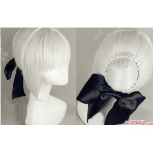 DW1190 LUGANO--Fate/zero Fate/stay night・セイバー(Saber)風 蝶結び付き コスチューム コスプレウイッグ+ウイッグネット