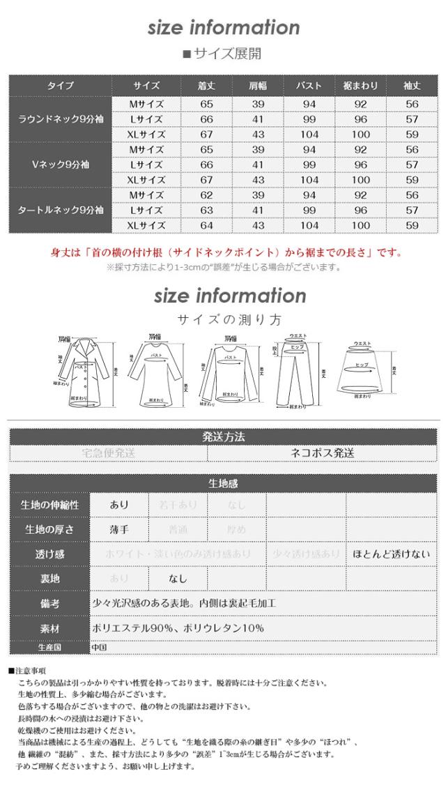 *長袖 着丈:65,肩幅:40,バスト:94,裾周り:90,袖丈:60,袖口:12