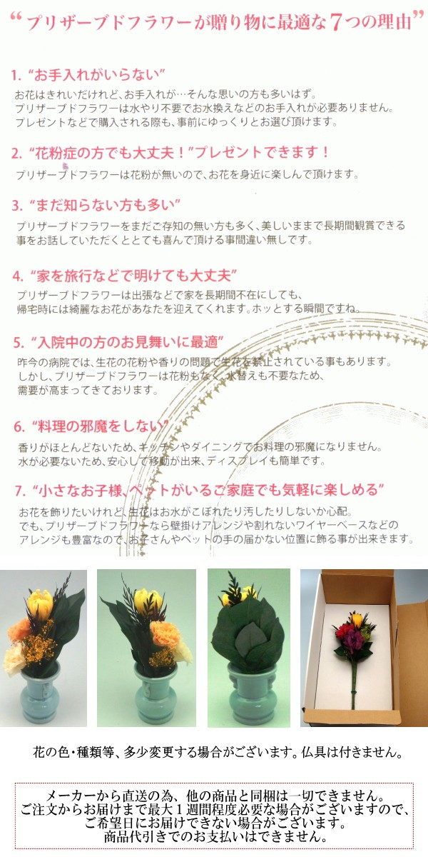 プリザーブドフラワー ミニ 仏花 アレンジ オレンジ