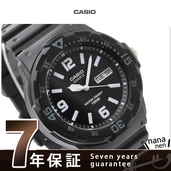 7年保証キャンペーン カシオ 腕時計 デイデイト クラシック 海外モデル オールブラック CASIO MRW-200H-1B2VDF ブラックのフォルムにアクセントカラーが映えるモデル。3時位置には日付・曜日表示を配置。大き目にデザインされたインデックスが視認性を向上させます。スポーティーなデザインはカジュアルな服装にピッタリ。ちょっとしたお出かけにも気軽にお使い頂けるモデルです。 日本未発売モデル