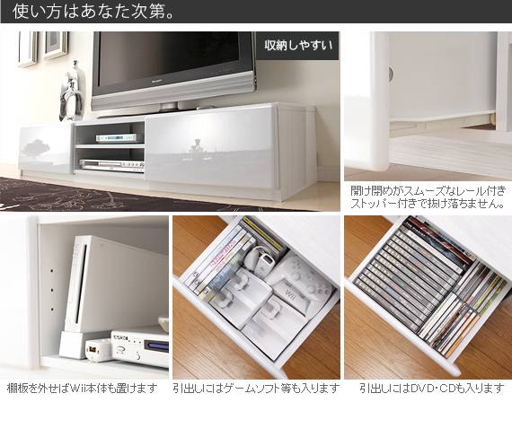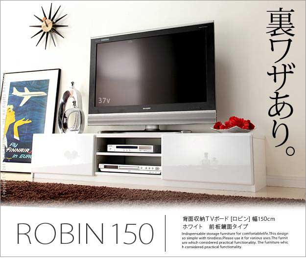 鏡面 仕上げ テレビ台 テレビボード ロータイプ 幅150cm ローボード 背面収納 ブラック ホワイト ウォールナット ロビン