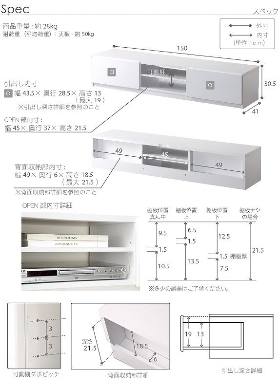 サイズ(cm):幅150x奥行41x高さ30.5cm