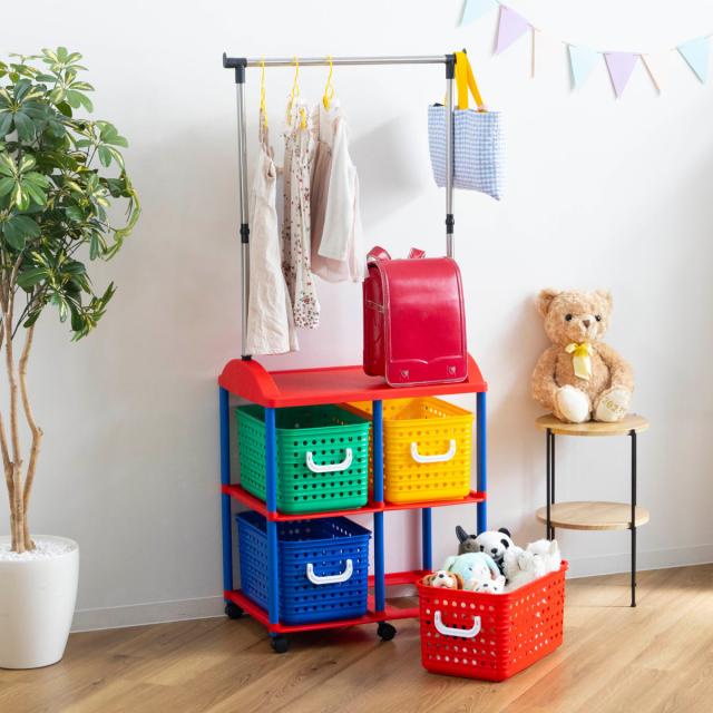 《 LH14823 子ども 収納ボックス カラフル オモチャ箱 おもちゃ入れ おもちゃ収納 オモチャ 玩具 おもちゃ オモチャ収納 ランドセル 絵本 洋服 子供服 引出し 置き 赤 青 黄色 緑 レッド ブルー イエロー グリーン 子ども部屋 子供部屋 かご カゴ 幅66×奥行44.5×高さ154.5cm コートハンガー キッズ キッズ収納ラック 》