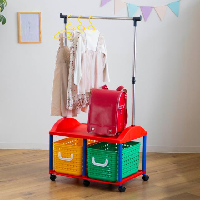 《 LH14823 カゴ 子ども 収納ボックス カラフル オモチャ箱 おもちゃ入れ おもちゃ収納 オモチャ 玩具 おもちゃ オモチャ収納 ランドセル 絵本 洋服 子供服 引出し 置き 赤 青 黄色 緑 レッド ブルー イエロー グリーン 子ども部屋 子供部屋 幅66×奥行44.5×高さ125cm コートハンガー キッズ キッズ収納ラック 》