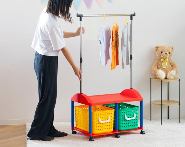 洋服や小物をまとめて収納できるキッズハンガーラック