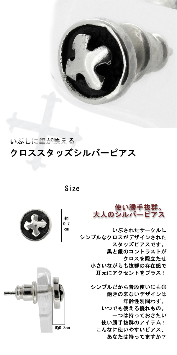 クロス スタッド シルバー ピアス (1P 片耳用)シルバー925 メンズ 男性用 ピアス 片耳