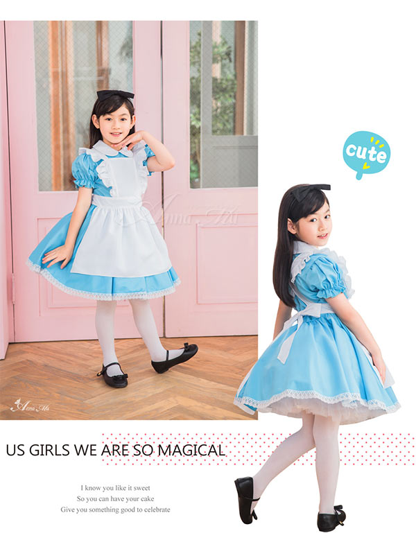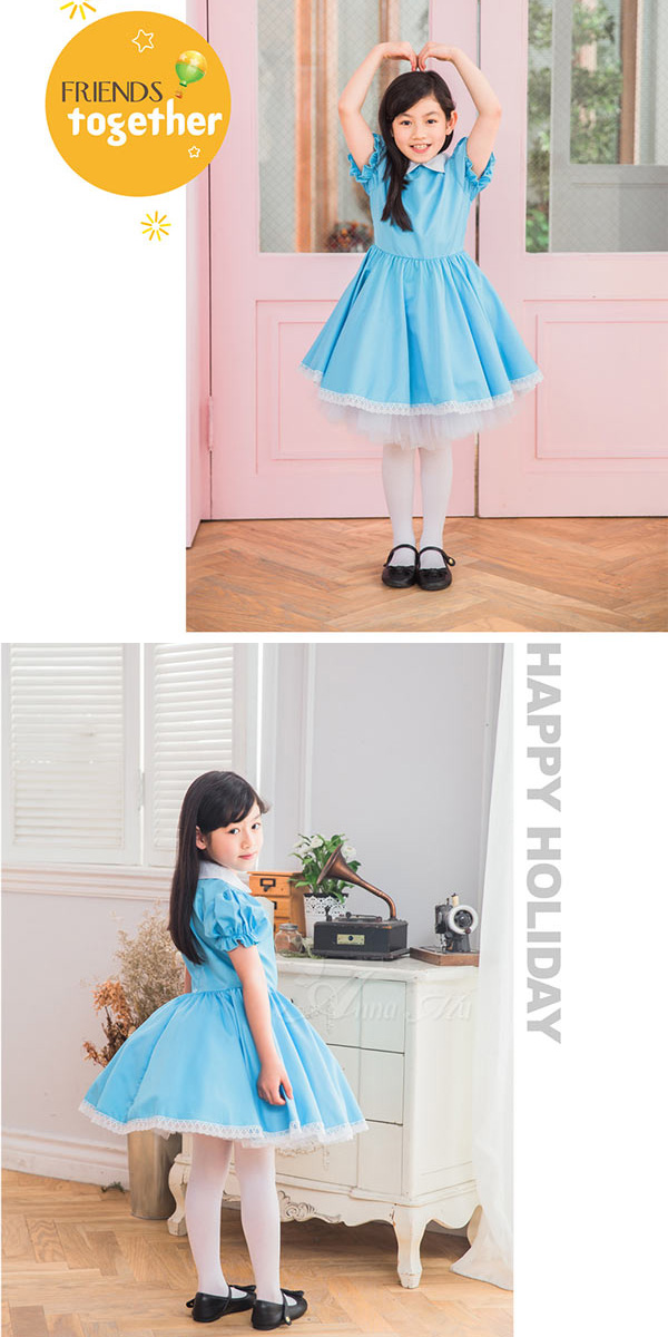 アリス コスプレ プリンセス コスチューム 女の子 キッズ ジュニア 子供用 半袖 ドレス お姫様 可愛い ペア おそろい イベント パーティー メイド メイド服 定番 女児 100 120 140 子供服 子供ワンピース ハロウィン 衣装 仮装