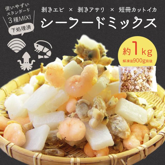 【業務用】【冷凍便送料別】お1人様7セットまで シーフードミックス あさり・えび・いか 1kg(解凍後900g前後) 冷凍便送料別 北海道・沖縄・離島のみ別途追加送料必要
