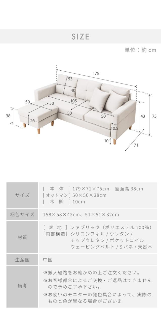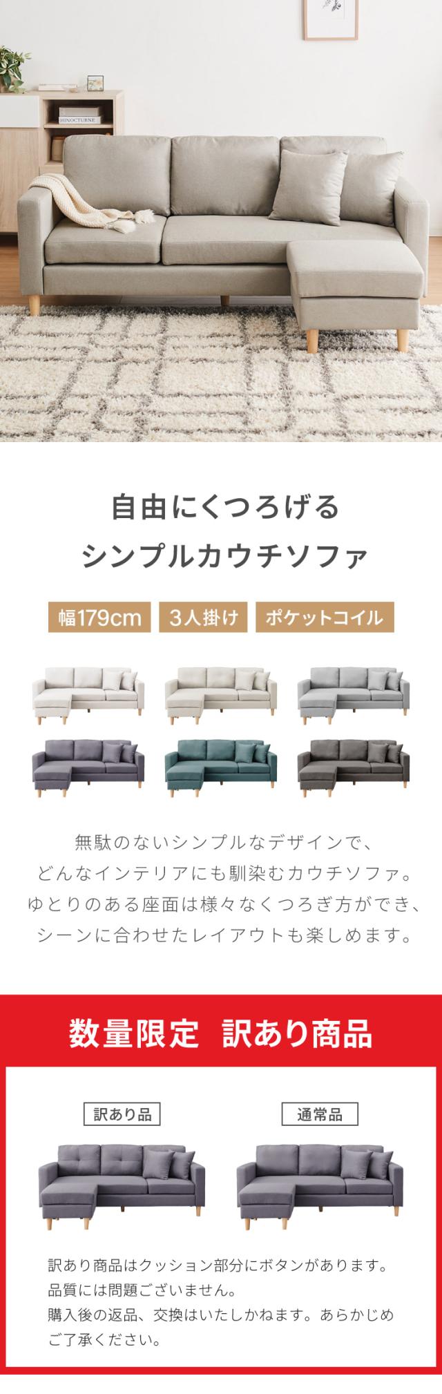 [幅179]3人掛けカウチソファ