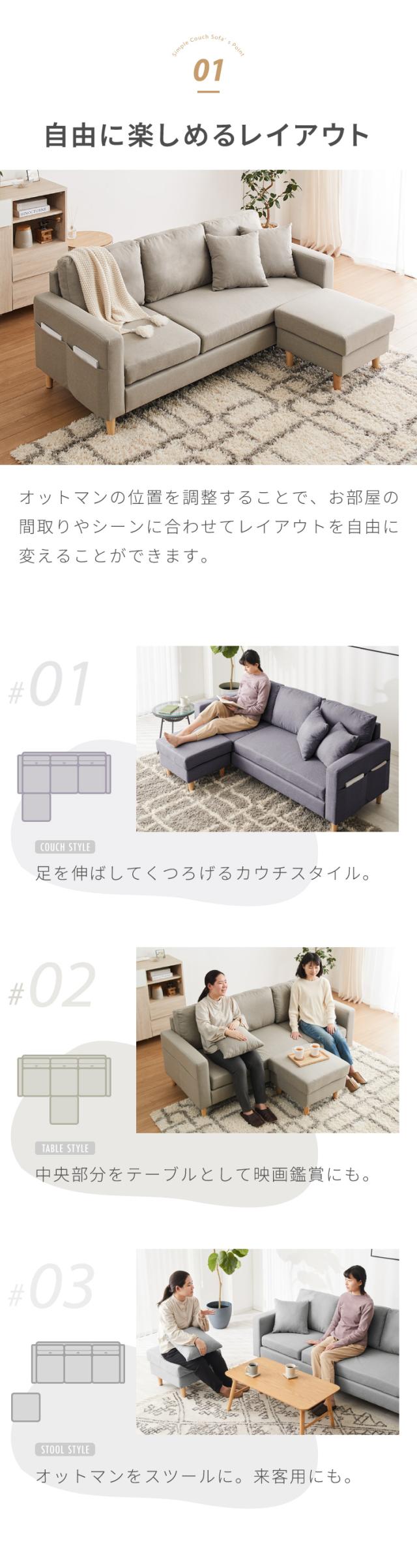 ・自由にくつろげるシンプルカウチソファ